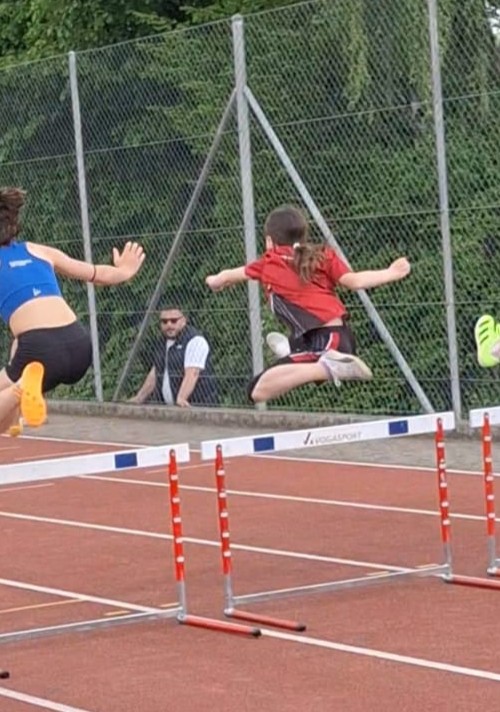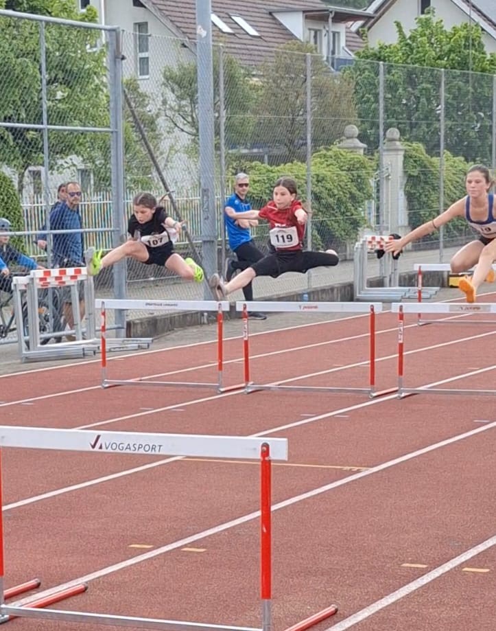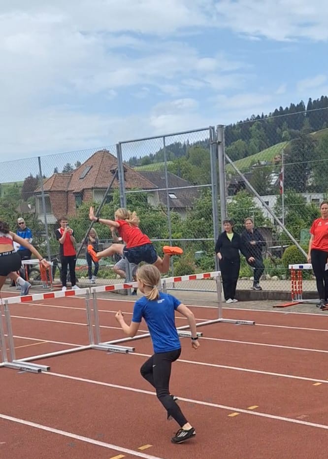 Heute haben wir uns trotz wechselhaftem Wetter gut gelaunt mit zwei motivierten Athletinnen auf dem Badiparkplatz getroffen und sind nach Langnau ans Hürdenmeeting gefahren.